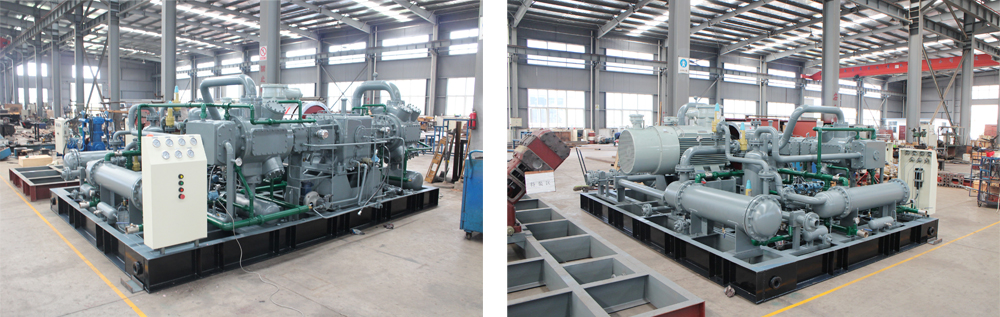 3、压缩机主机及辅机等设备全部安装在橇架上,运行平稳可靠,整体撬装便于压缩机的运输与安装。