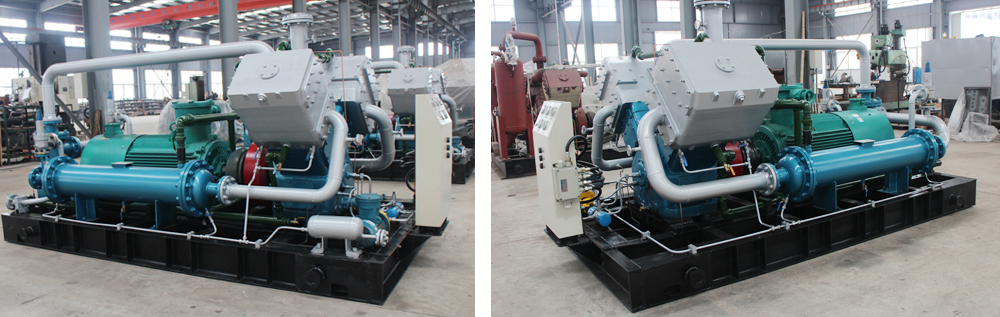 产品特点:1.本系列压缩机具有低噪音、振动小、结构紧凑、运转平稳、安全可靠、自动化水平高等特点,亦可根据客户要求配置数据化远距离显示及控制系统。2.具有压缩机油压低,水压低、温度高、进气压力低、排气压力高等报警停机功能,使压缩机运行更加可靠。